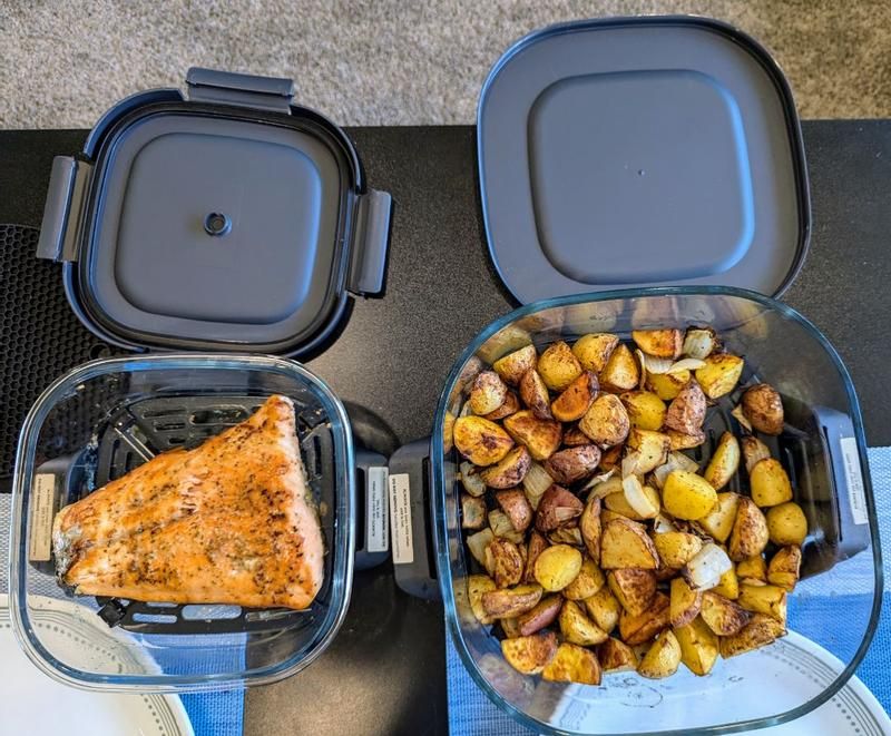 • SMALL & LARGE BATCH CONTAINERS: 6-cup container cooks a personal sized meal or even snacks in 7 mins while the 4-qt fits a 4-lb chicken and veggies.
