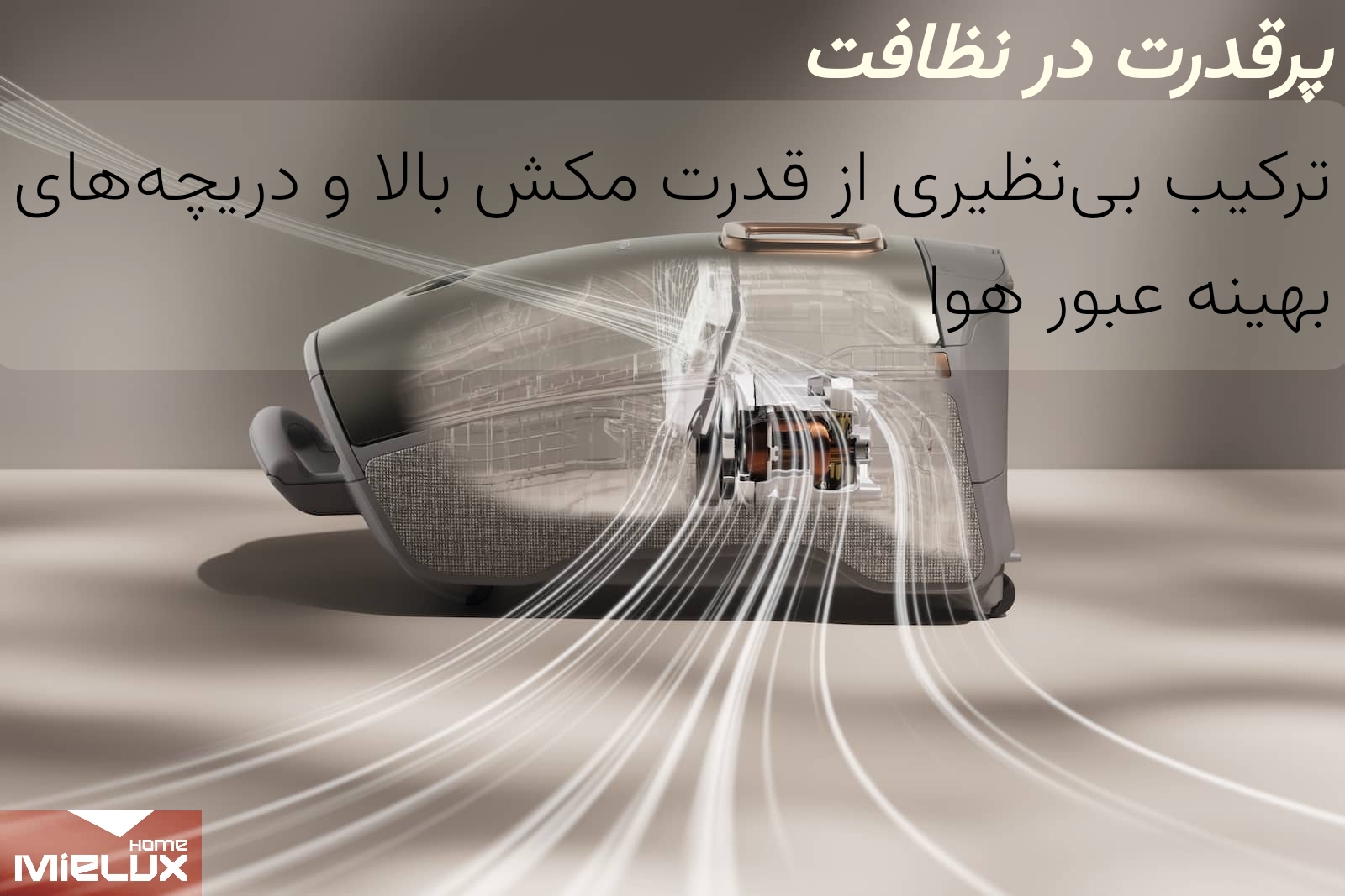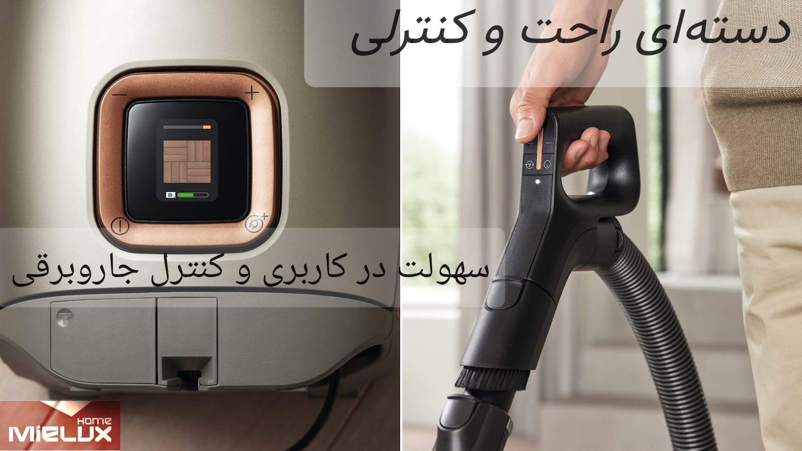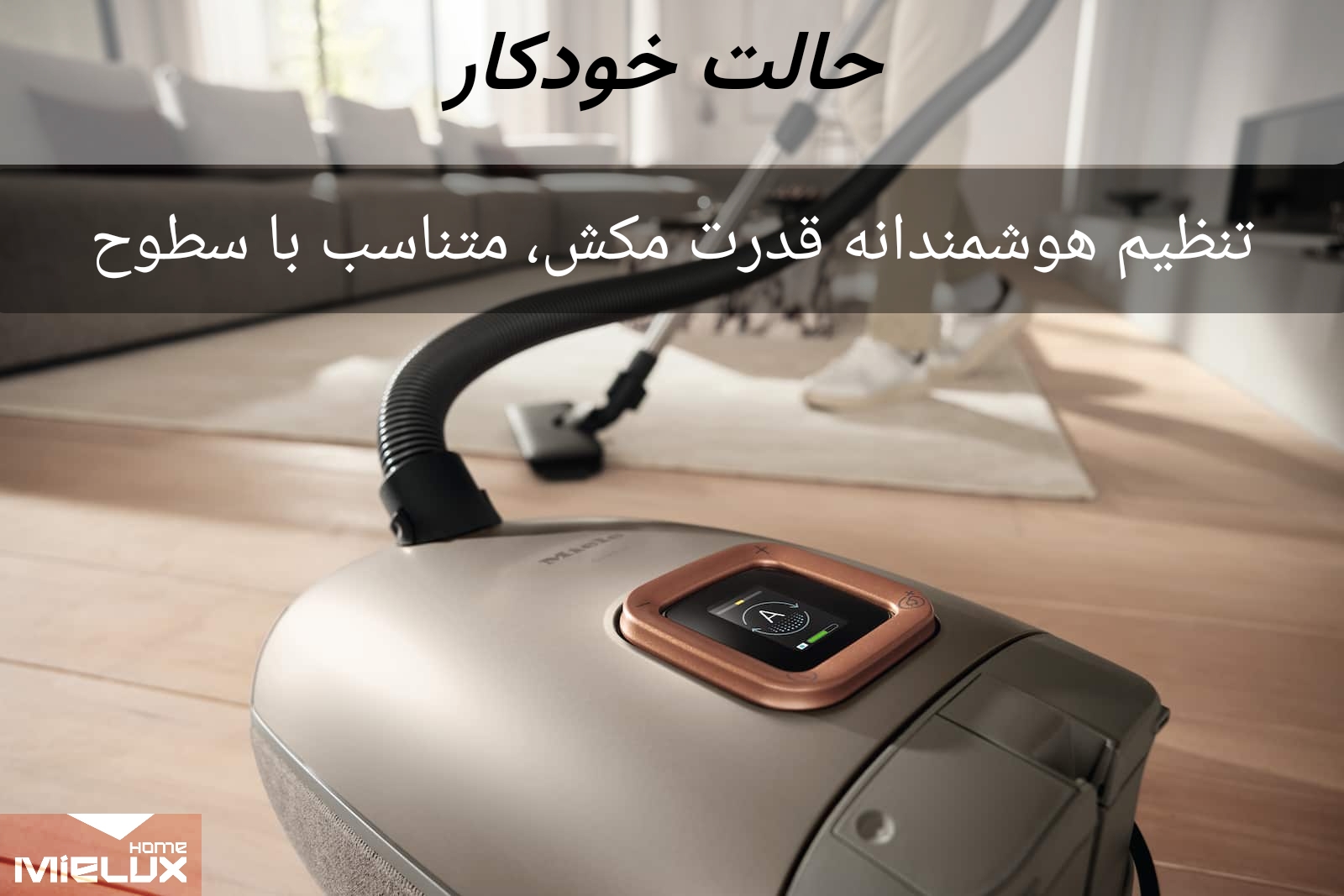 - نظافت با خاطری آسوده به کمک: ۱- دسته رادیویی، ۲- حالت خودکار و تنظیم قدرت مکش متناسب با سطوح مربوطه ۳- نمایشگر LCD