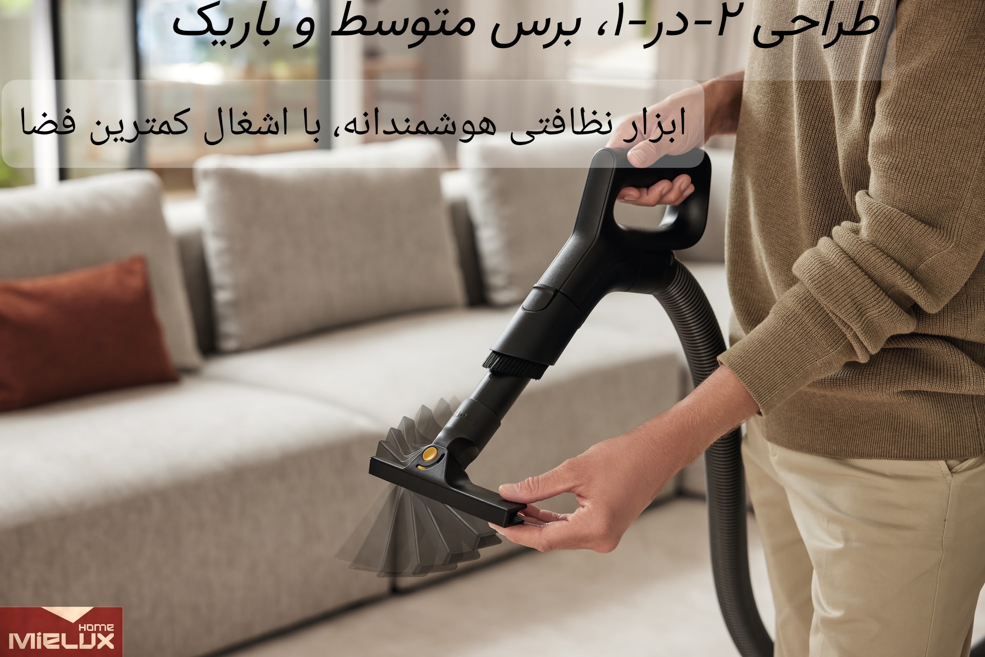 انتخاب حالات روشن-خاموش و افزایش-کاهش مکش از روی دسته و طراحی مناسب در ظاهر جهت آسودگی کاربران لحاظ شده و برس گَردگیر امکان نظافت سریع و آسان سطوح ظریف را به کاربران میدهد.