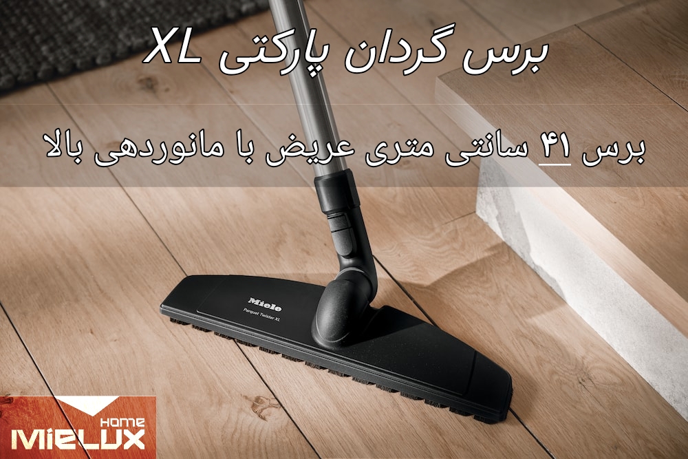 The Miele Parquet Twister XL brush is perfect for gentle and effortless cleaning of sensitive hard floors. Thanks to the unique double swivel joint, it is highly manoeuvrable and flexible. The soft natural bristles glide gently and easily over the floor without leaving scratches. With a 41 cm width, it enables quick cleaning with up to 25 % time savings – for exceptionally effective cleaning.