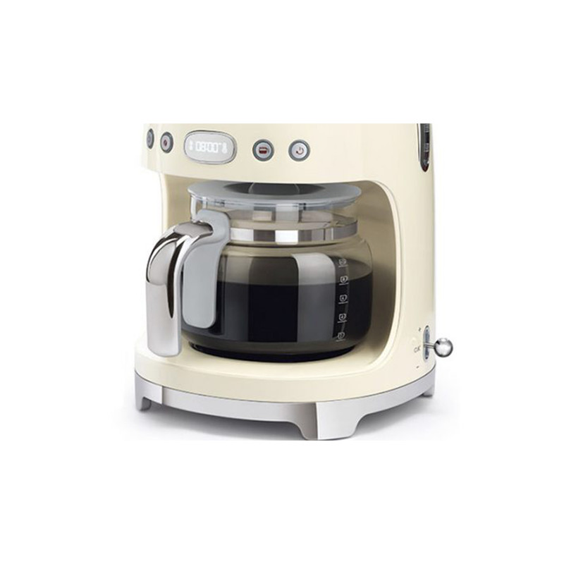 شرکت اسمگ با طراحی محصولات خانگی که مخصوص خود میباشد به یک برند کاملا لوکس و شناخته شده در جهان تبدیل شده است. این برند ایتالیایی اصالت طراحی خود را حفظ کرده است و به هیچ شیوهای به طراحیهای مدرن روی نیاورده است. حتی نوشتهی شرکت را که به روی محصولات خانگی خود میزند با همان سبک و سیاق قدیمی نگه داشته و به صورت درشت روی بدنه محصولات برچسب میزند که امروزه بیشتر شرکتها از آن استفاده نمیکنند. پس از این توضیحات تصمیم داریم تا قهوه ساز اسمگ مدل DCF02 را خدمت شما معرفی نماییم.از جذابیتهای شرکت اسمگ این است که رنگبندیهای متنوعی را در محصولات خود به کار میبرد. همین امر را در قهوه جوش اسمگ DCF02 نیز پیاده کرده است و برای هر سلیقهای رنگی در نظر گرفته شده است.این اسمگ DCF02 برای یک خانوادهی متوسط به بالا در نظر گرفته شده است. ظرفیت مخزن آب در این قهوه ساز 1400 میلی لیتر است تا به راحتی بتوانیم چند فنجان قهوه را به وسیلهی آن دم کنیم. البته ظرفیت قوری کمتر میباشد و 1250 میلی لیتر است.یک روش کاربردی ساده است که پس از تمام شدن زمان دم کردن قهوه با یک آلارم هشدار ما را متوجه امر میسازد. این صدا در قهوه ساز smeg مدل DCF02 و بیشتر قهوه سازها وجود دارد تا بتوانیم درست پس از دم کردن قهوه از آن استفاده نماییم.اگر برای بسیاری از وسایل خانگی ضروری نباشد ولی گرم نگه دار برای قهوه ساز بسیار ضروری مینماید. زیرا قهوه پس از سرد شدن امکان دم کردن دوباره را ندارد پس باید در همان حالت گرمی نگه داشته شود تا مدتی پس از دم کشیدن نیز بتوانیم آن را به همان حالت خوش طعمی خود بنوشیم که در قهوه جوش اسمگ وجود دارد.
