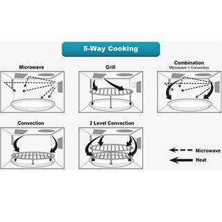 دستگاه NN-CD997S محصولی باکیفیت با قابلیتهای فراوان است که علاوهبر امکان پخت با امواج، از ویژگی کارکرد گریل و کانوکشن هم بهرهمند است. کارکرد گریل برای ترد و برشتهکردن سطح بیرونی غذا ایدئال است و با گرمایش المنتهای حرارتی داخل محفظهی فر کار میکند. کانوکشن عملکردی شبیه به فر دارد و با فعالسازی آن هوای گرم به صورت یکنواخت در اطراف غذا به جریان میافتد و پختی یکسان در تمام سطح آن انجام میشود. استفاده از کانوکشن باعث پختهشدن سطح بیرونی و در عین حال آبدارماندن و حفظ طراوت و تازگی بخش درونی و طعم خوب غذا میشود. پخت کانوکشن میتواند برای تهیهی انواع غذا و کیک و دسر استفاده شود. گفتنی است وجود قابلیت پخت ترکیبی در این محصول باعث شده بتوانید قابلیتهای پخت با اشعه و کانوکشن را در کنار هم و به صورت ترکیبی استفاده کنید تا بهترین نتیجه از پخت غذای محبوبتان حاصل شود.