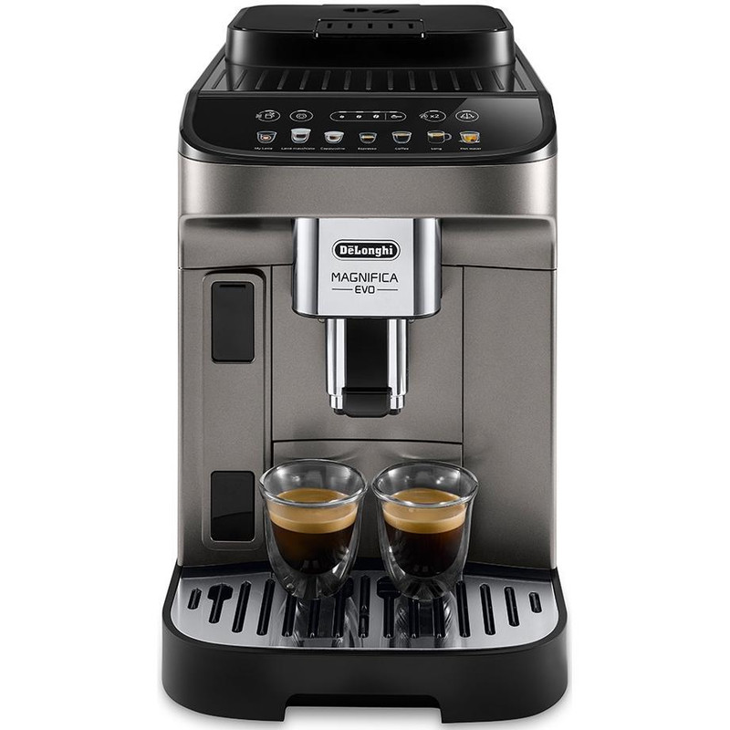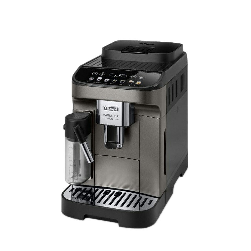 اسپرسوساز اتوماتیک دلونگی مدل Magnifica Evo ECAM 292.81 یکی از محصولات شگفت انگیز برند دلونگی بوده که به صورت کاملا اتوماتیک طراحی شده است. جنس بدنه دستگاه ترکیبی از پلاستیک مرغوب و استیل می باشد که میزان درخشندگی آن بسیار بالا است. همچنین دارای یک پنل لمسی بوده و با کمک 7 دستور برنامه ریزی شده در دستگاه قادر خواهید بود به کمک پودر قهوه و مخزن شیر انواع نوشیدنی های با شیر و بدون شیر را بدون دخالت دست و فقط با لمس یک گزینه تهیه کرده و مزه واقعی قهوه را بچشید. همچنین اسپرسوساز تمام اتوماتیک دلونگی ECAM 292.81 دارای سیستم منحصر به فرد لاته کرما بوده که بافت پر چربی از شیر را برای انواع لاته و کاپوچینو مهیا می کند. توان ورودی دستگاه دلونگی اکثر دستگاه های تمام اتوماتیک به دلیل دارا بودن سه مخزن مجزا آب، شیر و آسیاب قهوه و همچنین تولید فشار بخار آب بالا و مکانیزم ترموبلاک باید دارای توان زیادی باشند. اسپرسوساز 292.81 هم یکی از این موارد بوده که مهندسین برند دلونگی توان 1450 وات را برای آن طراحی کرده اند. این میزان توان باعث به جوش آمدن سریع آب برای تهیه عملیات قهوه و همچنین تولید فشار بخار بالا در سریع ترین زمان ممکن می شود. مخزن مجزا برای آسیاب قهوه بسیار پر اهمیت می باشد. اگر دستگاهی چنین مخزنی داشته باشد کار تولید اسپرسو بسیار راحت تر شده و طعم قهوه به 100 درصد خود نزدیک می شود. اسپرسو ساز دلونگی مدل ایکام 292.81 دارای یک مخزن 250 گرمی کوچک بوده و با کمک سنگ های نوع مخروطی قهوه را در اندازه های کاملا یکسان پودر و خرد می کند. همچنین با تنظیم درجه آسیاب می توانید تا 13 حالت قهوه را پودر نمایید. زیرا هر چقدر قهوه دارای درجه پودر پذیری بیشتری شود، غلظت و مزه آن افزایش یافته و بیشتر مزه قهوه را درک می کنید.